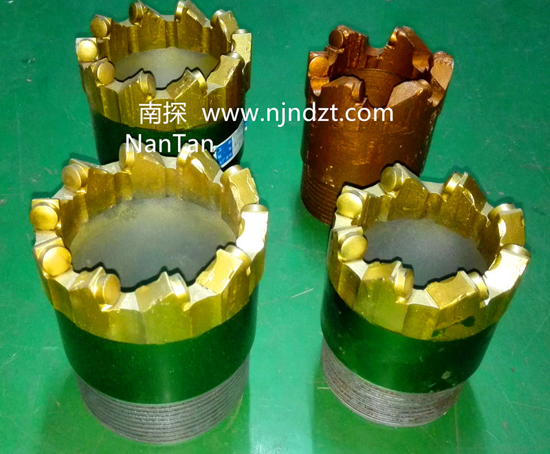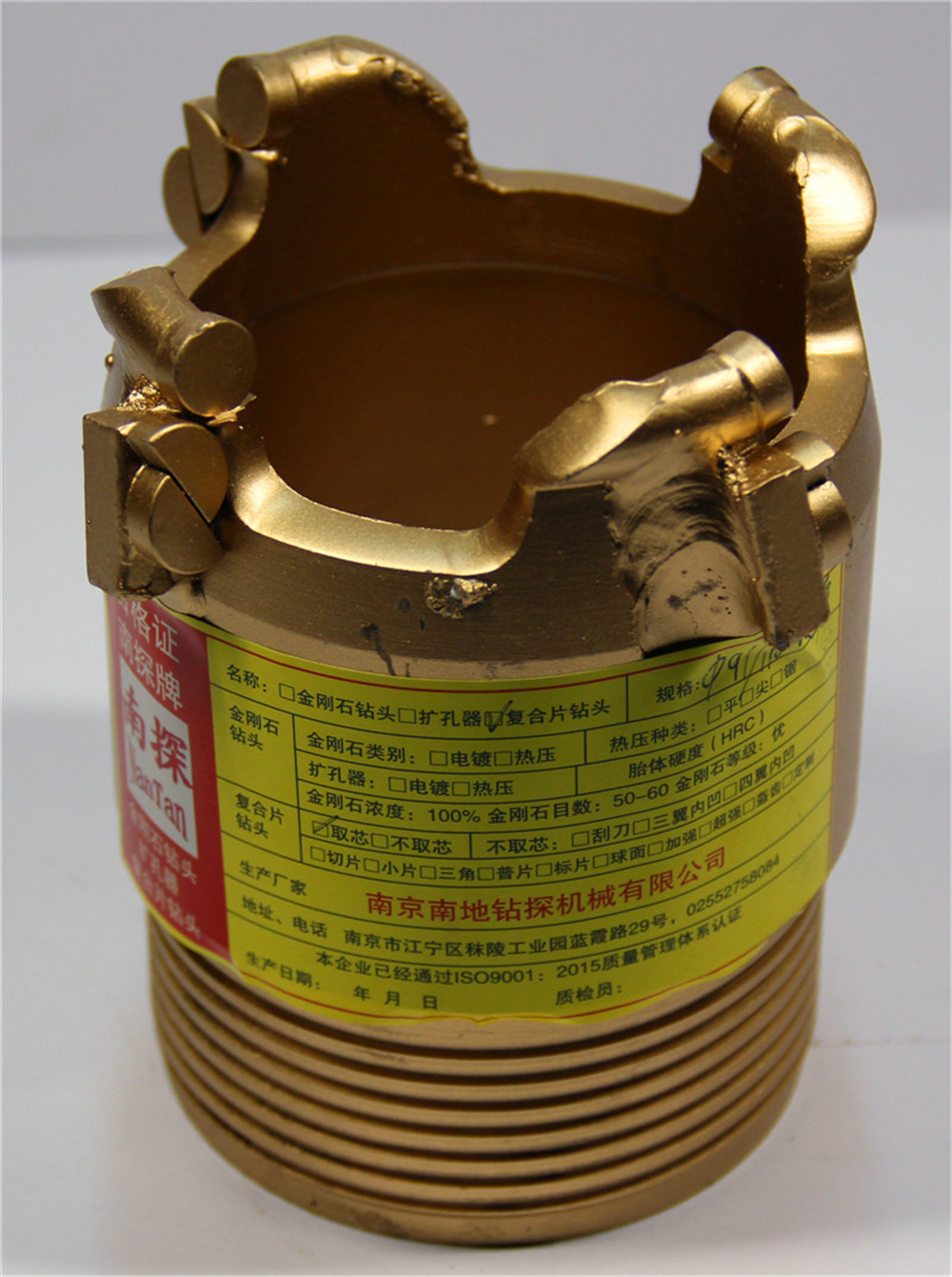 巖心管(單管)取芯復合片鉆頭按照復合片的種類又可以分:普通型復合片鉆頭、加強型復合片鉆頭、球面復合片鉆頭、超強型復合片鉆頭、盔齒型復合片鉆頭、切片復合片鉆頭、小牙復合片鉆頭、小牙螺紋復合片鉆頭、菠蘿復合片鉆頭、外肋骨復合片鉆頭、無內徑跟管復合片鉆頭等許多種,以便于滿足不同地層、砂礫石、巖石的取芯需求。該種鉆頭穩(wěn)定性好,具有使用壽命長、鉆進效率高、低壓中速鉆進、保徑效果好、使用范圍廣和具有優(yōu)越的性價比等特點,可廣泛應用于地質勘探、煤田開采、水利水電施工(水井開發(fā))、地熱孔、公路、鐵路、建筑施工建設的巖石鉆進及巖石抽心取樣驗樁。
