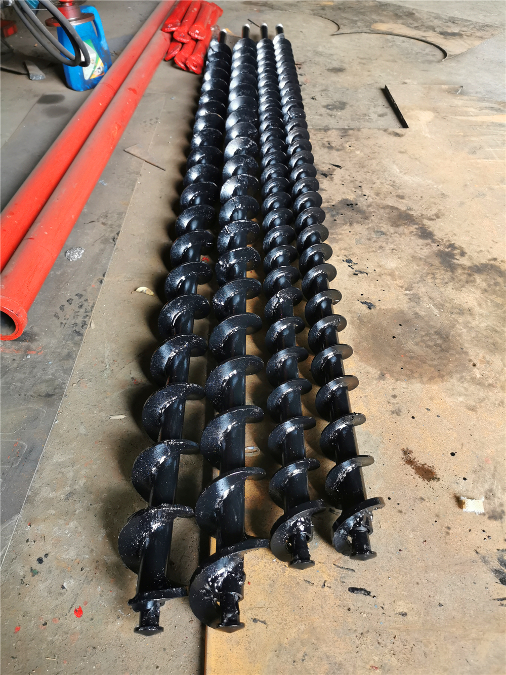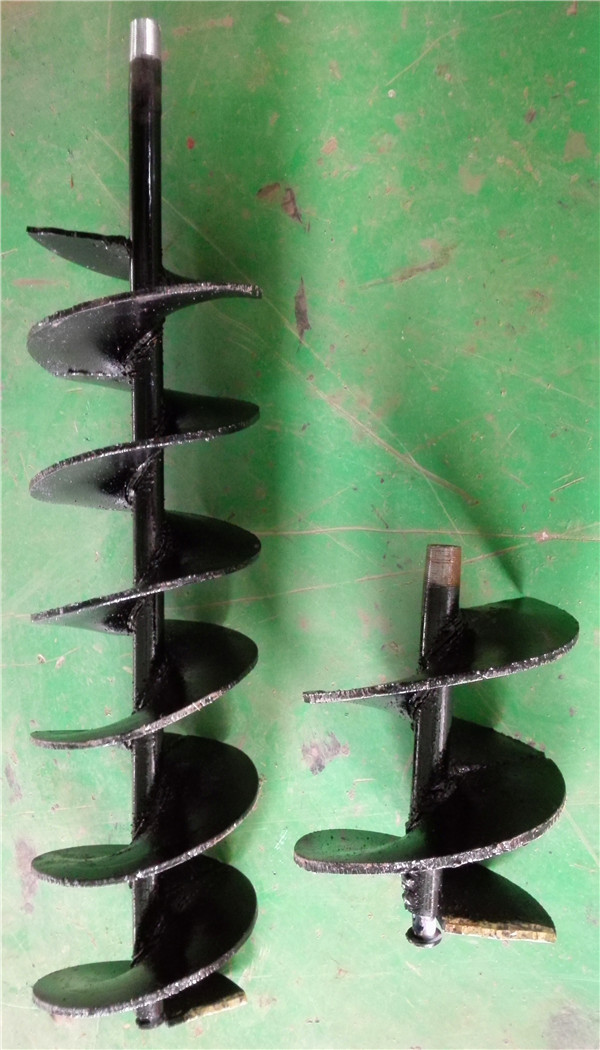 常用提土鉆(麻花鉆、螺旋鉆):葉片直徑:Φ75、Φ90、Φ110、Φ130、Φ150,大口徑有Φ180、Φ200、250、300、350、400、450、500...常用長(zhǎng)度0.5m、1m、1.5m、2m、3m,葉片分標(biāo)準(zhǔn)和全葉兩種。