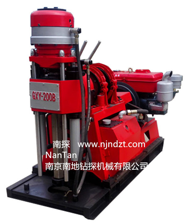 GXY-200B型鉆機(jī)是一種機(jī)械傳動(dòng)液壓給進(jìn)的立軸回轉(zhuǎn)式、輕便多用途工程勘察施工鉆機(jī),它適用于工業(yè)和民用建筑以及公路、鐵路、橋基、壩址、水利、水井、探礦等工程地質(zhì)勘察工作,淺層石油和天然氣開采,礦山坑道通風(fēng)、排水,以及小口徑的基樁孔施工等,固體礦床的普查勘探,爆破孔用各種混凝土結(jié)構(gòu)的檢查孔等。根據(jù)地層的不同,可選用金剛石、硬質(zhì)合金、螺旋等鉆頭進(jìn)行鉆孔。具有結(jié)構(gòu)緊湊,重量輕,體積小,可拆性好等優(yōu)點(diǎn),是適應(yīng)新型市場(chǎng)需求不可多得的理想設(shè)備之一。